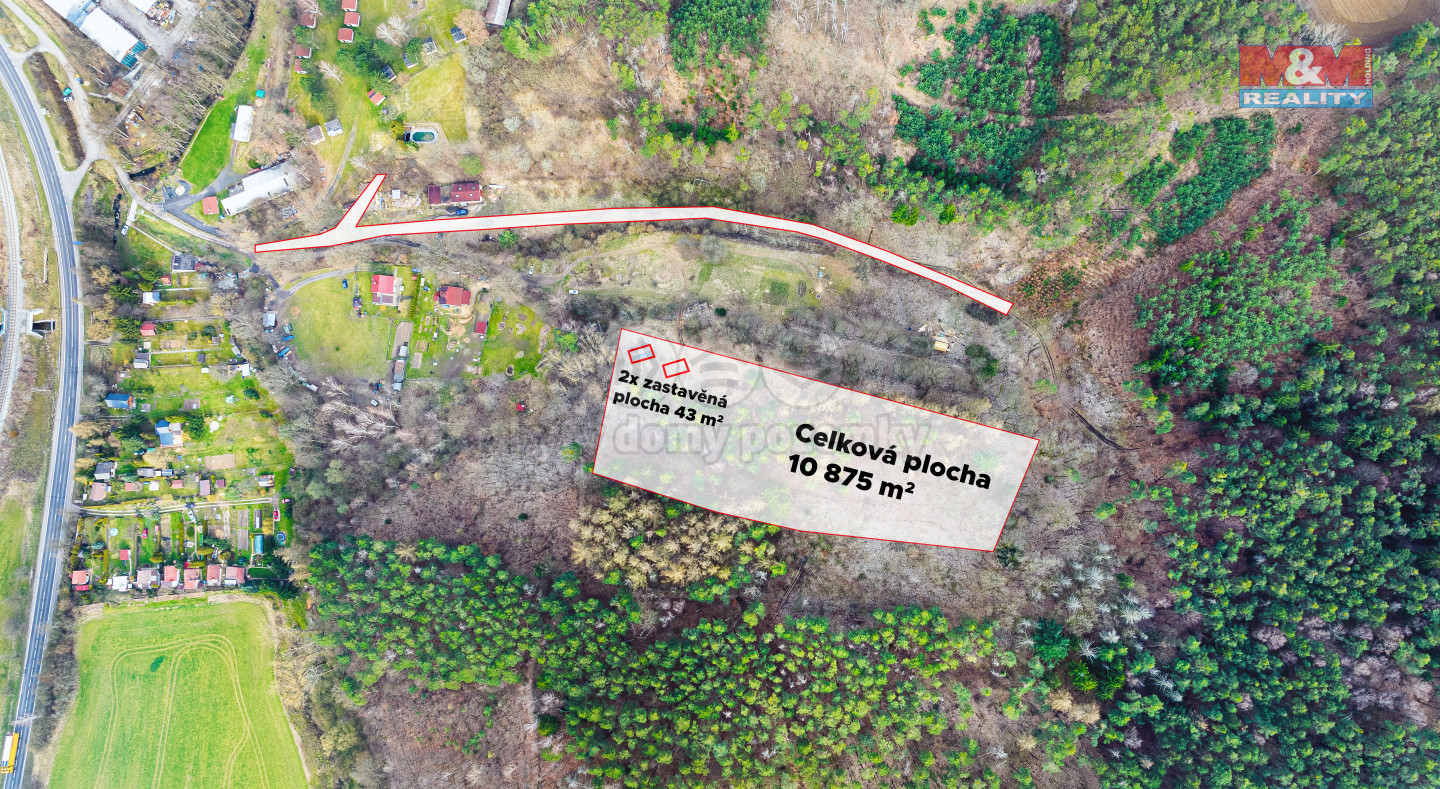 V rekreační oblasti v blízkosti jezera Chmelař na Českém Předměstí nedaleko od centra města Úštěk v okrese Litoměřice v Ústeckém kraji nabízíme k prodeji rozsáhlý pozemek o CP 10875 m2, který je součástí bývalého rekreačního areálu. Na pozemku o CP 4743 m2 na LV zapsané jako sportoviště a rekreační plocha jsou dvě zastavěné plochy a nádvoří, každá o zastavitelné ploše 43 m2, kde jsou dvě zchátralé chaty, zapsané na LV jako jiná stavba bez č. ev. a popisného. Sousední pozemek o CP 4883 m2 - trvalý travní porost je celý zalesněný vzrostlými jehličnatými a listnatými stromy, které je možné vytěžit na dřevo. Krásné a malebné místo pro klidnou rekreaci. Více informací volejte makléři.