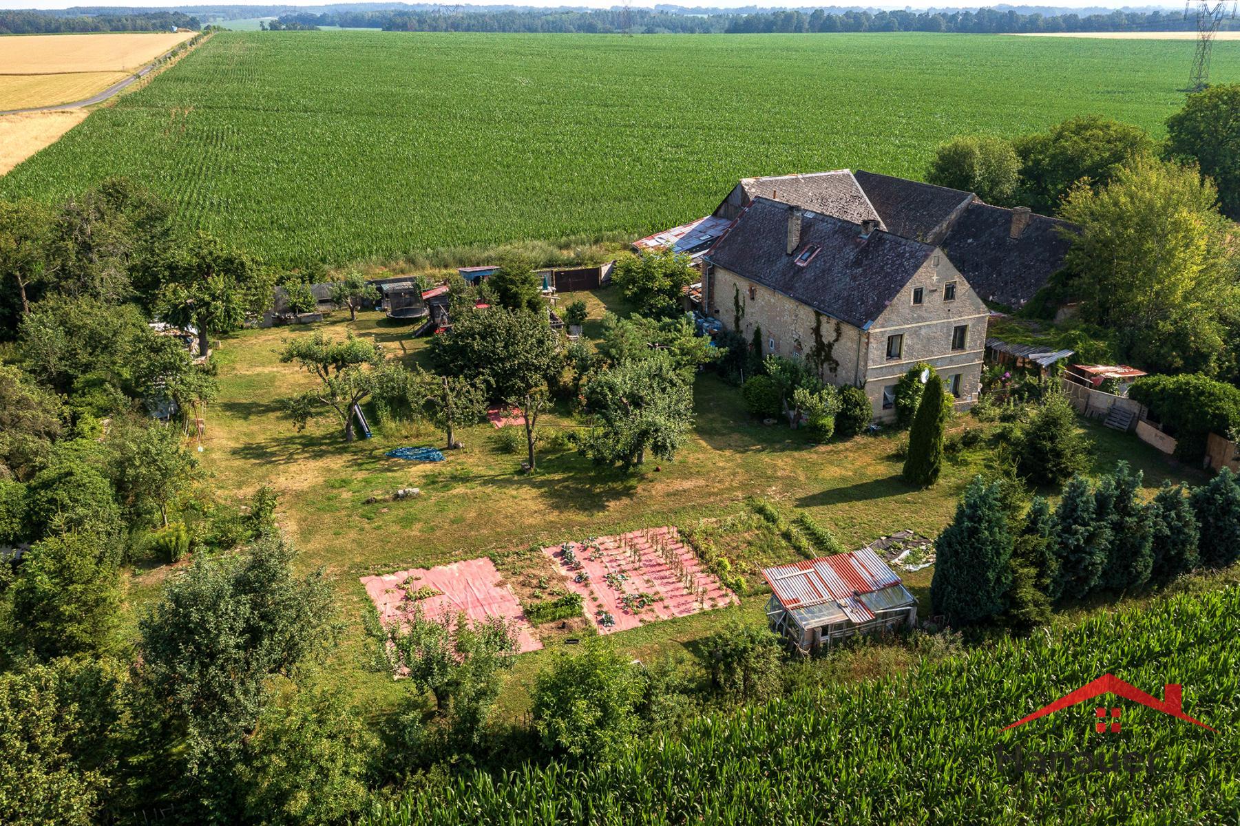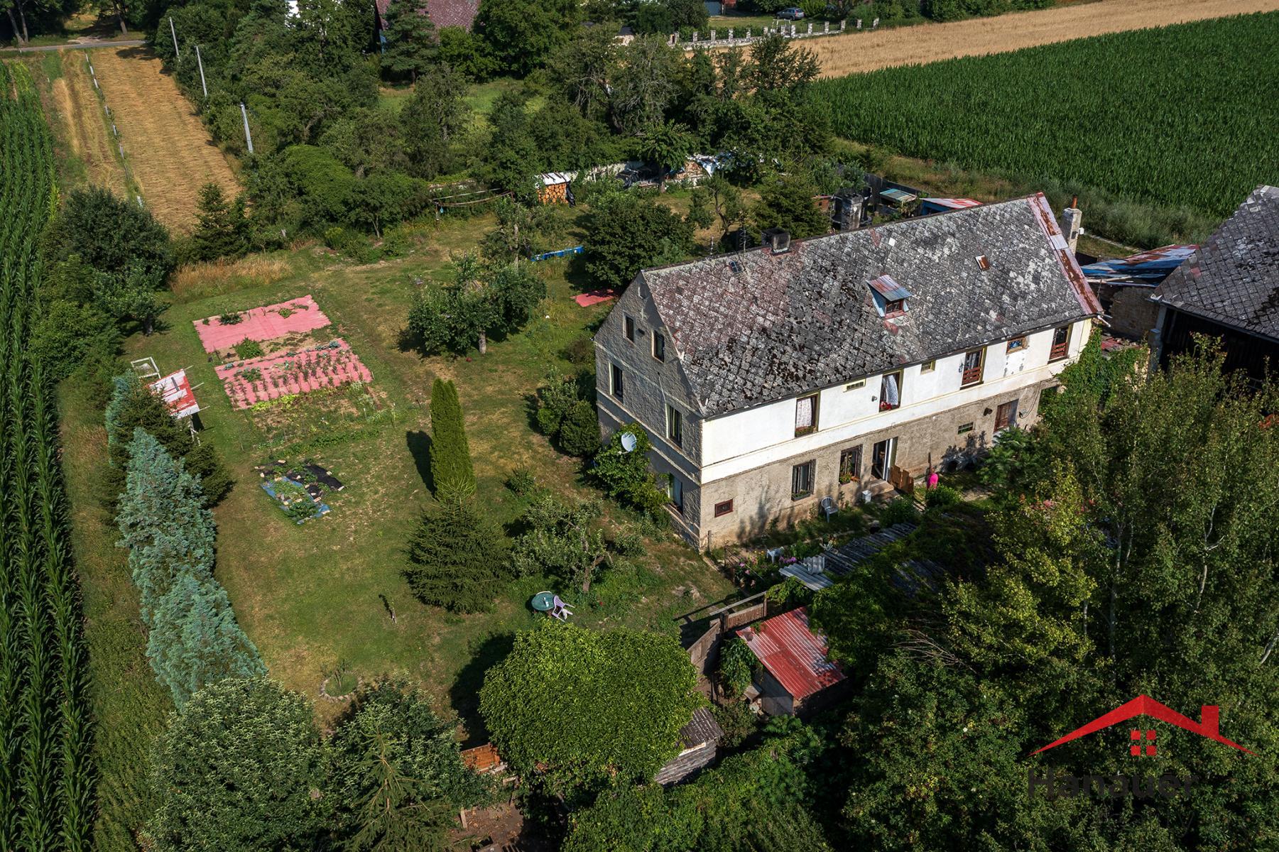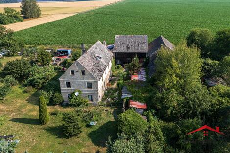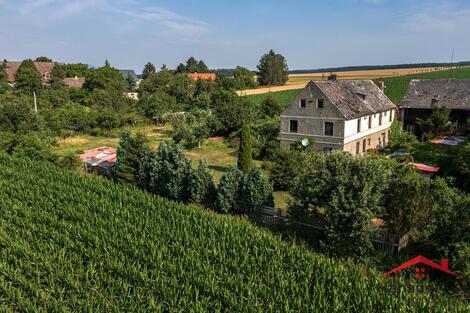 Nabízíme Vám prodej podílu na rodinném domě a pozemcích v Julčíně u Úštěka. Spoluvlastnický podíl ve výši 12/25 o celkové ploše 1 907 m2, v tom je zastavěná plocha a nádvoří - 1173 m2, a zahrada - 734 m2. Jedná se o zděný, podsklepený venkovský dům se třemi nadzemními podlažími bez využitého podkroví pod sedlovou střechou, krytou eternitovými šablonami. Do objektu se vchází přes dřevěnou stodolu, která může zároveň sloužit jako garáž. Ve dvoře jsou zděné přístavky - možnost chovu domácího zvířectva. Součástí prodeje je i zahrada o výměře 828 m2 a orná půda o výměře 245 m2 - zde se jedná o spoluvlastnický podíl 2/5 . Zahrada je na rovině a je udržovaná. Objekt se nachází v zastavěné, okrajové části obce Julčín, katastrální území Vědlice, nedaleko městečka Úštěk. Parkování je možné před domem. Pozemky a dům jsou přístupné po veřejné zpevněné komunikaci. Dům je napojen na veškeré inženýrské sítě.