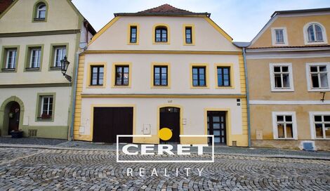Ve výhradním zastoupení nabízíme prodej unikátního (mezonetového) rodinného domu o obytné podlahové ploše 300 m2 v historickém centru královského města Žatec. Dům byl průběžně udržován, mimo střechy, před 20 lety. Možnosti využití jsou široké, několik samostatných bytů a/nebo kanceláří či provozoven (2 koupelny funkční a 1 v přípravě), obrovské klenuté sklepy - jeden z nich zrekonstruovaný na párty místnost s krbem, pípou a přímým vstupem na zahradu. Další součástí domu je dvougaráž, veliká dílna, zahrada s pergolou, velký kotec pro psy, terasa s krásným výhledem. Dům může zůstat částečně vybaven. Do domu jsou zavedeny všechny inženýrské sítě, ve 3 místnostech krby, nebo krbová kamna. Zahrada je ohraničena původními městskými hradbami. Dům je stále obýván a vytápěn. Na případnou rekonstrukci střechy, popřípadě fasády, lze získat dotaci. V případě zájmu o prohlídku nás kontaktujte. S financováním koupě vám rádi pomůžeme. Menší sleva možná.