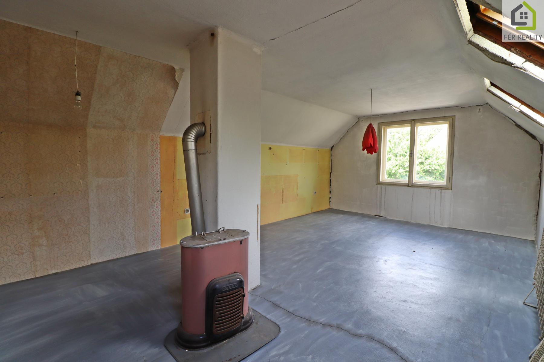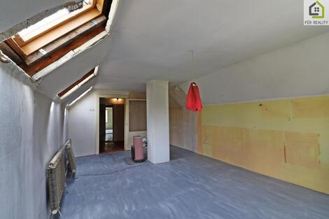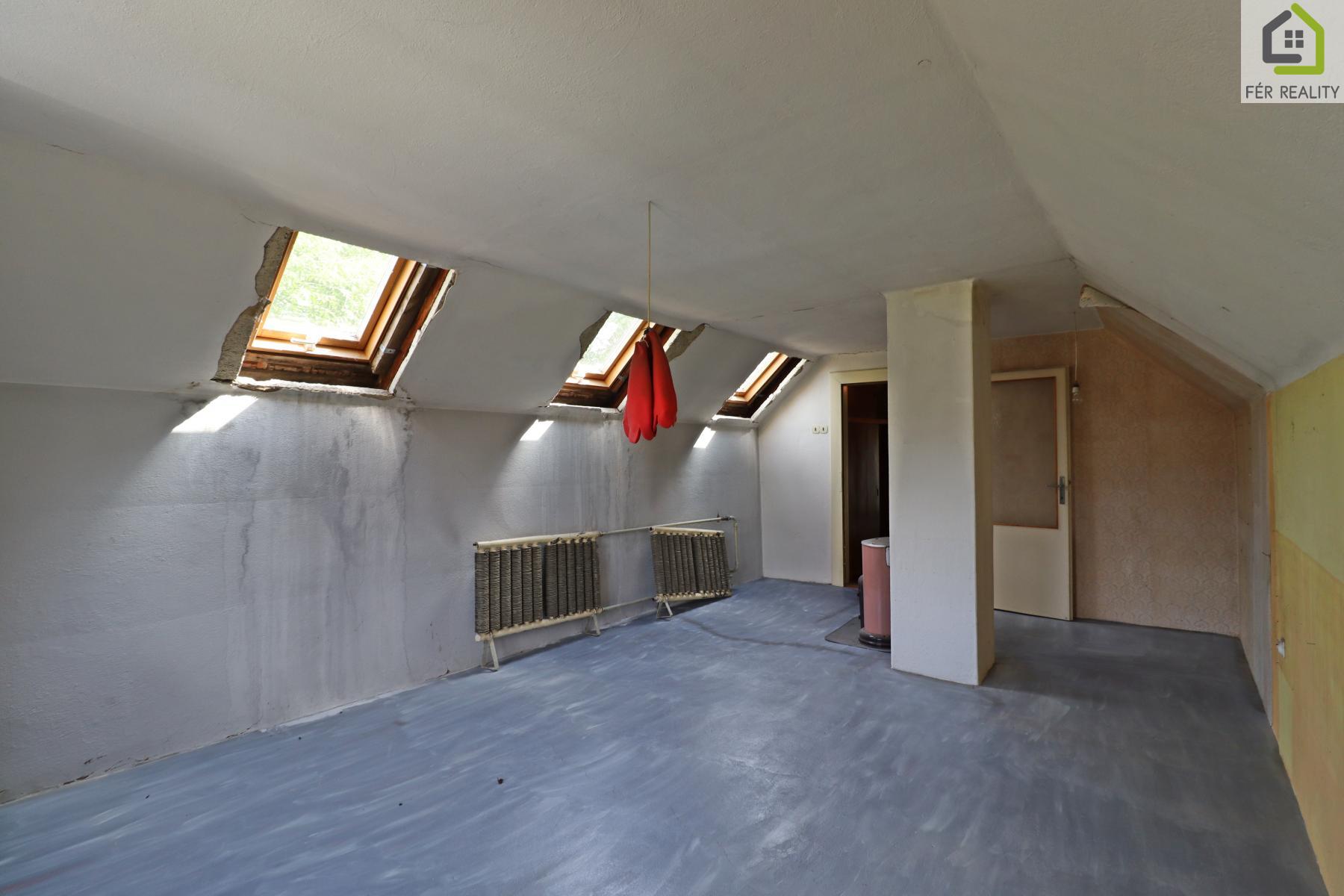 Společnost FÉR REALITY vám exluzivně zprostředkuje prodej rodinného domu s obytným podkrovím a rovinatým pozemkem v obci Horní Beřkovice ve velmi klidné ulici Dlouhá. Poloha nemovitosti zaručuje zároveň klidné i lukrativní bydlení s dostupností veškerých služeb. Vzhledem k dispozičnímu řešení je dům vhodný pro rodinné bydlení a k rekonstrukci dle vlastních představ. Dům je o dispozici 4+1+garáž s celkovou zastavěnou plochou 146 m2 (RD 124 m2, garáž 22 m2). Pozemek se zastavěnou částí měří 1110 m2 a užitná plocha je 180 m2. Rodinný dům je téměř z poloviny podsklepen. Přístup k nemovitosti je po zpevněné obecní komunikaci s vjezdem do garáže a přímo na pozemek. Nemovitost je před rekonstrukcí. Základem je plná pálená cihla, strop nad suterénem betonový, v 1.NP dřevěný trámový, sedlová střecha, střešní krytina pálená taška, okna dřevěná špaletová. Podlahové krytiny jsou kombinací dřevěných prken, teraca a keramiky. Další stavbou na pozemku je přízemní zděná garáž s plochou střechou. V 1.NP nalezneme verandu, chodbu, schodiště, kuchyni, obývací pokoj, ložnici, spíž, koupelnu a samostatnou toaletu. Ve 2.NP (podkroví) jsou dva pokoje, hala a šatna/koupelna. V 1.PP je zádveří, kotelna a dva sklepy. Topení je ústřední a je zajištěno plynovým kotlem, ohřev vody bojlerem. Dům je napojen na elektřinu, plyn a vodovodní řád. Kanalizační přípojka je přivedena na pozemek. Mezi občanskou vybavenost patří například školka, školka, knihovna, obchod s potravinami, sportoviště a jiné služby. V rámci servisu realitní kanceláře Vám rádi pomůžeme s financováním. V případě dotazů kontaktujte makléře nemovitosti.