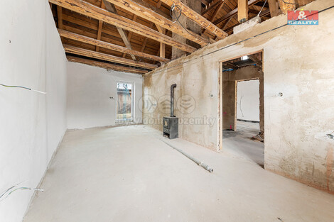 Nabízíme k prodeji samostatně stojící rodinný dům v klidné části Hostomic nad Bílinou. Dům o aktuální dispozici 2+kk prochází rekonstrukcí s plánovanou příčkou v pravém pokoji z pohledu od dveří a vestavbou dvou pokojů do podkroví, což umožní vytvoření prostorného 5+kk. Nemovitost je postavena ze smíšeného zdiva a zahrnuje 1 podzemní a 1 nadzemní podlaží. Při rekonstrukci byla kompletně vyměněna střecha, zajištěna stabilita nosných konstrukcí a provedena chemická injektáž obvodových zdí. Nové elektrické rozvody a odpady jsou již instalovány. Užitná plocha domu je nyní 81 m2 na pozemku o rozloze 329 m2. V případě dotazů nás neváhejte kontaktovat. Tato nemovitost je ideální pro ty, kteří hledají klidné bydlení s možností dokončení dle vlastních představ.