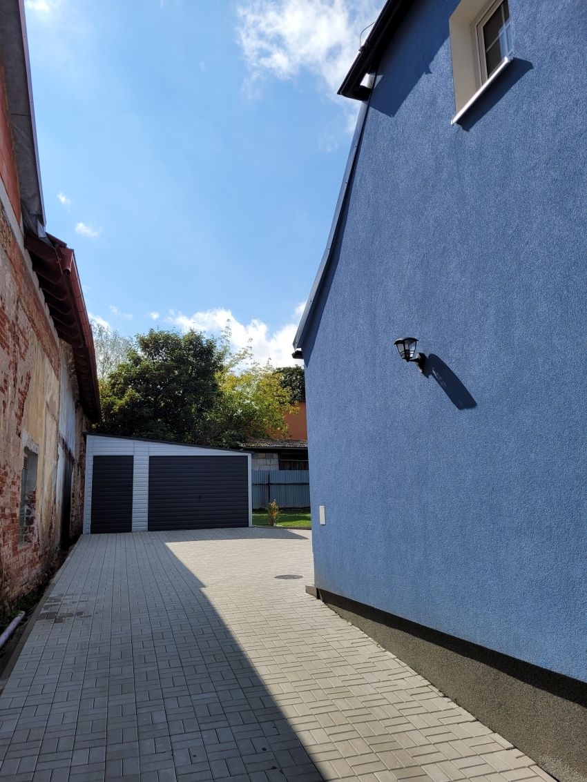 Nabízíme k prodeji prostorný a kompletně zrekonstruovaný rodinný dům, který se nachází přímo v srdci města Vroutek. Nemovitost je díky své dispozici, dvěma schodištím a připraveným přípojkám v patře vhodná jak pro rodinné bydlení, tak jako výborná investiční příležitost - s možností vybudovat až tři samostatné bytové jednotky nebo vícegenerační dům. Dispozice a vybavení domu Vstup do domu vede přes uzavřené nádvoří, které poskytuje naprosté soukromí. Za vstupními dveřmi se nachází menší předsíň se schody do patra. Odtud vstoupíte do prostorné haly, která vás zavede do hlavní ložnice s elegantním klenutým stropem. Centrální část domu tvoří kuchyně přístupná z haly, ze které se dále dostanete do: • obývacího pokoje o výměře 29 m2, • velké koupelny (12,6 m2) vybavené vanou, sprchovým koutem, WC, umyvadlem, designovým radiátorem a průtokovým bojlerem, • prostorné ložnice (25 m2), • prádelny s pračkou, sušičkou a dostatkem úložného prostoru. Mezi kuchyní a prádelnou se nachází chodba s druhým schodištěm do patra a vstupem do sklepa (6 m2). První patro - připraveno pro další bydlení V patře je v současnosti jedna ložnice. Zbylá část (celkem 172 m2 + půda 40 m2) je připravena k dokončení dle vašich představ - jsou zde nachystány veškeré potřebné přípojky (elektřina, odpady, koupelna, kuchyně). Díky dvěma samostatným schodištím lze podkroví rozdělit a vytvořit několik bytových jednotek. Ideální varianta pro investory nebo větší rodiny. Technické vybavení a energetika Dům je napojen na městský vodovod, kanalizaci a elektřinu. Vytápění i chlazení zajišťují klimatizační jednotky. Velkým benefitem je solární elektrárna s bateriovým uložištěm, díky které činí celkové měsíční náklady na energii přibližně 3000 Kč (včetně nabíjení elektromobilu). Energetická třída domu je F, což je způsobeno pouze jeho objemem - provoz domu je ale velmi úsporný. Rekonstrukce 2022-2025 Dům prošel rozsáhlou a kvalitní rekonstrukcí: • nová střešní krytina + 20 solárních panelů, • kompletní zateplení fasády i podkroví, • nová plastová okna, • kompletní výměna elektroinstalace, rozvodů vody a odpadů, • stěny ošetřeny proti vlhkosti. Velká část vybavení může zůstat po dohodě, a dokonce je možné přikoupit i elektromobil. Pozemek a okolí Dům se nachází na pozemku o výměře 537 m2, zastavěná plocha je 195 m2. Součástí je také prefabrikovaná garáž z roku 2025 s nabíječkou pro elektromobily. Ve Vroutku najdete veškerou základní občanskou vybavenost, širší nabídku služeb poskytují nedaleké Podbořany (6,5 km). Dálnice D6 je jen 7,5 km daleko, a do Prahy dojedete za 1 hodinu (cca 77 km).