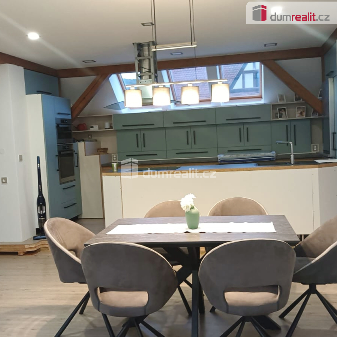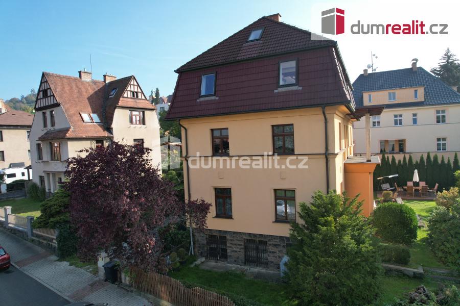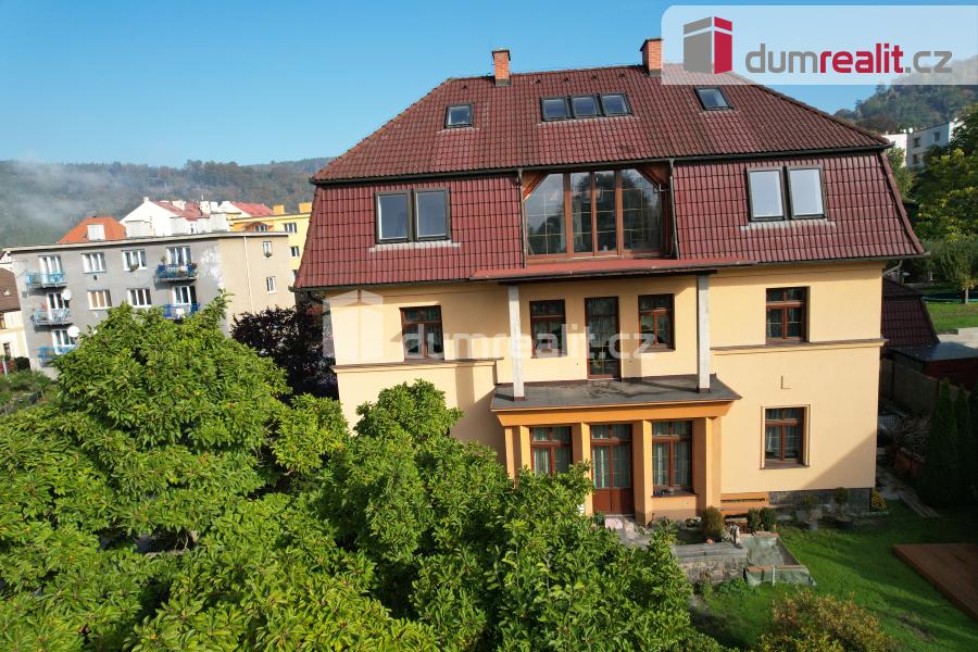 Dumrealit.cz Vám zprostředkuje prodej prvorepublikové vily v žádané lokalitě města Děčín - Nové Město, ul. Nedbalova. Jednotlivá podlaží domu nabízí maximální komfort pro vícegenerační bydlení. Horní podkrovní část domu prošla moderní rekonstrukcí. Toto patro však nabízí prostory další, a tím bydlení rozšířit. Vilu lze po rekonstrukci a dostavbě nového podkroví rozdělit na dvě části. V původní části domu, v přízemí, se nachází velká jídelní hala, pracovna, obývací pokoj a kuchyň. Z prostoru jídelní haly je možno francouzskými dveřmi vstoupit přímo do okrasné zahrady. Po dřevěném schodišti se dále dostanete do druhého patra domu, kde se rozkládá samostatný byt o velikosti 4+0 s vlastní koupelnou. V nové části domu, jeho levém křídle, se v prvním patře nachází bytová jednotka o dispozici 1+kk již v moderním pojetí. Následující patro je podkrovní. Zde je vybudován velkometrážní mezonetový slunný byt v opět moderním kabátě, jehož dominantou je obývací prostor s krbem, který navazuje na jídelní sekci s kuchyní na míru. Velká francouzská okna oddělují obytnou část od velké terasy s impozantním výhledem. Samozřejmě následují i další obytné místnosti včetně dvou ložnic. Moderně vybavená koupelna a zcela samostatná technická místnost. Pod polovinou domu se nacházejí zvýšené suterénní prostory se samostatným vchodem. Tyto lze, po rekonstrukci, využít jako bytovou jednotku o velikosti 1+1 nebo jako kancelář pro podnikání. V další části jsou sklepní prostory. Vytápění vily je řešeno plynovým kotlem. Ten je společně s bojlerem umístěn v suterénu. Dům byl v minulých letech kvalitně zateplen, taktéž došlo k výměně všech oken a dveří. Součástí domu je i nově přistavěná prostorná garáž 45 m2, nad níž jsou další obytné prostory propojené s původním domem. Vila má podlahovou plochu o výměře 490 m2, celková užitná je 580 m2. Okolo domu krásnou zahradu výměry 502 m2, v níž se nachází zpevněná celodřevěná plocha pro letní posezení. Interiér v domě je velmi podmanivý. Doplňují jej i původní historické prvky: centrální dřevěné schodiště, dřevěné obložení a zdobné prvky, kazetové obložení, původní masívní dveře, kachlová kamna, štukované stropy, osvětlení. Vše je doplněno stylovým nábytkem, který poukazuje na historii domu a rodinné sounáležitosti. Nemovitost se nachází v oblíbené lokalitě nedaleko lesoparku Kvádrberk. Také v těsné blízkosti areálu Nemocnice Děčín. Město Děčín se rozkládá na rozhraní Českého Švýcarska a Českého středohoří. Veškerá občanská vybavenost, síť obchodů a služeb, které uspokojí Vaše každodenní potřeby, jsou v docházkové vzdálenosti. Lokalita nabízí řadu kulturních i sportovních zařízení a několik historických památek, které stojí za to vidět. Dominantou tohoto nádherného okolí je bezesporu Děčínský zámek. Bližší informace k domu vám poskytneme v naší zprostředkovatelské Realitní kanceláři. Neváhejte nás kontaktovat. Ev. číslo: 652594. Energetický štítek: G