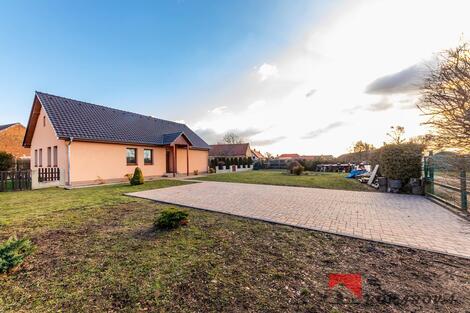 Zprostředkujeme exkluzivní prodej moderně řešeného rodinného domu 4+kk, v obci Krabčice okr. Litoměřice, s pozemkem o celkové výměře 1027 m2. Jedná se o přízemní rodinný dům. V domě se nachází vstupní chodba, obývací pokoj propojený s kuchyňským koutem, tři pokoje, koupelna s vanou, sprchovým koutem a samostatné WC. Vytápění domu zajišťuje plynový kotel, dále je zde možnost topení krbovými kamny s výměníkem, dům je napojen na městský vodovod a kanalizaci, plynovod, elektřina 220/380V. K domu náleží prostorná a slunná zahrada, kde je možnost příjemného posezení, ze zahrady krásný výhled na horu Říp. Bezproblémový vjezd na pozemek. K domu lze přikoupit stavební parcela o celkové výměře 967 m2, kde je postavena stodola, která lze předělat k pěknému bydlení. Obec Krabčice je na úpatí hory Říp, nachází se asi 4 km od města Roudnice nad Labem. V obci je dobrá občanská vybavenost - obchod, pošta, obecní úřad, škola, školka, restaurace, širší občanskou vybavenost najdeme v Roudnici nad Labem - obchody, pošta, lékař, restaurace, mateřské školky, základní školy, zimní stadion, plavecký bazén atd. Výborné spojení na Prahu, autem do Prahy cca 25 min. (na stanici metra Kobylisy), Ústí nad Labem cca 30 min., dálnice D8 v blízkosti domu. Dům je možno financovat hypotékou, kterou Vám v případě Vašeho zájmu zdarma vyřídíme. Pro bližší informace či prohlídku kontaktujte makléřku. <a href="https://www.eurobydleni.cz/byty/2_kk/litomerice/obec-steti/pronajem/"><strong>Pronájem bytu 2+kk Štětí</strong></a>
