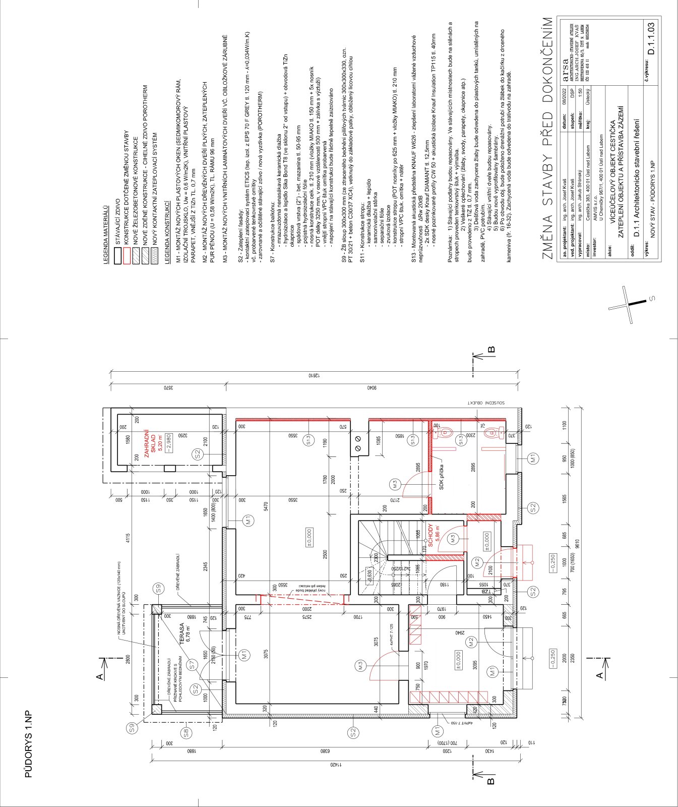 !!SLEVA!! z 6.490.000 Kč na 5.290.000 Kč Prodej prvorepublikového domu (polovina dvojdomku) ve vilové čtvrti Klíše. Dům je před rekonstrukcí, se zpracovaným projektem. Stavební povolení je těsně před vydáním. Dům stojí v klidné ulici Cestička. Dům má celkem tři nadzemní podlaží a půdu, přičemž dvě podlaží jsou přístupná vchodem z ulice a jedno podlaží je přístupné samostatným vchodem ze zahrady, které lze využít jako technické zázemí domu nebo po úpravách jako samostatný byt. V projektu se počítá s vybudováním dvou vlastních stání pro vozidla na pozemku, případně lze vytvořit další přímo před domem. Stávající podlahová plocha 1. NP je cca 58 m2, 2. NP je cca 64 m2, 3. NP je cca 51 m2 a půdy cca 51 m2. Jednotlivá patra jsou přístupná z centrálního schodiště. Kuchyň a koupelna v obou patrech mají okna na severní stranu do ulice, obývací pokoj a ložnice mají okna situovaná na jihovýchodní, slunnou stranu. V novém projektu se počítá s podlahovou plochou 1. NP (v úrovni zahrady pozemku) o cca 58 m2. Skládá se z centrální chodby, předsíně, koupelny, která zároveň slouží jako technická místnost, šatny, kuchyně s jídelnou a obývacího pokoje. Jídelna a obývací pokoj mají okna do zahrady ve vnitrobloku. Projekt počítá s vybudováním terasy o cca 6,5 m2, orientovanou do zahrady, na kterou se vchází z obývacího pokoje v 1. NP. Podlahová plocha 2. NP je cca 64 m2, skládá se ze vstupní předsíně, chodby, samostatné toalety, a dvou pokojů, přičemž z jednoho je vstup o podlahové ploše cca 7,4 m2. Podlahová plocha 3. patra je cca 51,6 m2, skládá se z hlavní bytové koupelny, samostatné toalety, průchozího pokoje s podlahovou plochou cca 13,6 m2, ze kterého se vstupuje do neprůchozího pokoje o podlahové ploše cca 19,3 m2. Nabízí se možnost vytvořit výstup z tohoto pokoje a na střeše relaxačního prostoru si vytvořit terasu o velikosti cca 15 m2, ze které by byl výhled do vnitrobloku a na pohoří obklopující Ústí nad Labem. Celková plocha je cca 224 m2 včetně 51 m2 půdy. Je možné alternativně vybudovat v 1. NP a 2. NP mezonetový byt se zahradou a v 3.NP a půdě samostatný menší byt s vlastním vchodem. Plocha zahrady je cca 281 m2, její velkou výhodou je umístění za domem, které díky převýšení kryje před pohledy z ulice a orientace na jihovýchodní stranu, díky tomu je prakticky celý den oslněná slunečními paprsky. Rekonstrukce zateplení, opláštění, otvorových výplní, mezipatrových izolací a zdroje vytápění je vhodná pro čerpání podpory z programu Nová zelená úsporám. Dům prozatím nemá vyhotovený průkaz energetické náročnosti, proto je uváděna třída G.