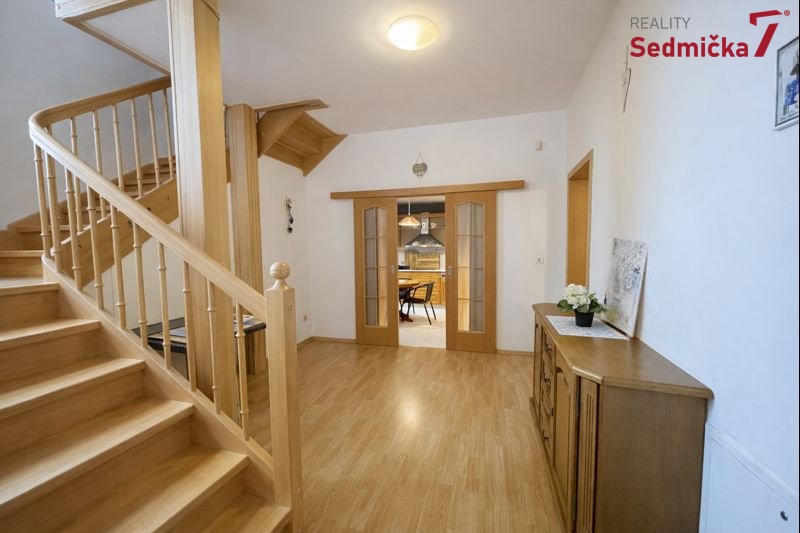 Nabízíme k prodeji prostorný rodinný dům v oblíbené části Střekov v Ústí nad Labem. Dům má aktuální dispozici 4+1, užitnou plochu přibližně 320 m2 a je situován na pozemku o celkové výměře 682 m2. Součástí je samostatná garáž o ploše 28 m2 a zahrada o výměře 538 m2. Nemovitost nabízí velkorysé prostory pro rodinné bydlení, možnost vícegeneračního užívání i kombinaci bydlení s podnikáním. 1. nadzemní podlaží Přízemí domu má plochu přibližně 91 m2. Do domu se vstupuje přes zádveří, ze kterého je přístup na samostatnou toaletu. Vstup dále ústí do prostorné haly, která tvoří přirozené centrum celého podlaží. Po pravé straně se nachází rozlehlý obývací pokoj propojený s jídelnou o velikosti přibližně 48 m2. Tento prostor je světlý, vzdušný a poskytuje komfort pro každodenní rodinný život i společenská setkání. Dispozici lze v případě potřeby vrátit do původního stavu a místnost opět rozdělit na dva samostatné pokoje. Z čela haly je vstup do samostatné kuchyně s dostatkem pracovních ploch a úložných prostor. Z haly vede také schodiště do druhého nadzemního podlaží. 2. nadzemní podlaží Druhé patro je přístupné pohodlným dřevěným schodištěm. V mezipatře je umístěna praktická komora. Horní podlaží otevírá centrální hala se vstupy do tří samostatných ložnic. Pokoje jsou světlé, prostorné a vhodné jako hlavní ložnice, dětské pokoje či pracovna. Součástí patra je velká koupelna s toaletou, vanou i sprchovým koutem. Z haly pokračuje schodiště do podkroví. 3. nadzemní podlaží, podkroví Podkroví je rozděleno na dva samostatné pokoje s celkovou využitelnou plochou přibližně 45 m2. Prostory lze využít jako další ložnice, ateliér, pracovnu nebo zázemí pro hosty. Díky zajímavým oknům a šikminám má podkroví příjemnou atmosféru a velký potenciál pro moderní úpravy. 1. podzemní podlaží Suterén je přístupný jak schodištěm z kuchyně, tak samostatným vstupem ze zahrady. Nachází se zde komora pod schody, další skladovací místnost, chodba, prádelna a technická místnost se zázemím vytápění se zásobníky topného oleje. Dominantou suterénu je velká místnost vhodná jako dílna, sklad, domácí posilovna nebo společenský prostor. Díky oddělenému vstupu lze tuto část využívat nezávisle na obytných patrech. Plocha suterénu činí přibližně 91 m2. Potenciál domu Dispozice domu je velmi variabilní a nabízí široké možnosti využití. Prostory jsou vhodné pro pohodlné rodinné bydlení, zároveň však umožňují úpravy pro vícegenerační řešení. Díky velikosti a logickému členění lze dům přizpůsobit i kombinaci bydlení a podnikání. Velkorysé místnosti, kvalitní schodiště a centrální haly dodávají domu reprezentativní charakter. Charakter domu Dům je udržovaný a působí příjemně a útulně. Interiér nabízí kvalitní dřevěné prvky a praktické dispoziční řešení. Nemovitost poskytuje prostor pro okamžité bydlení i potenciál pro modernizaci podle představ nového majitele. Díky velikosti a členění je vhodná jak pro početnější rodinu, tak pro zájemce hledající reprezentativní bydlení s možností pracovního zázemí. Lokalita Střekov patří mezi oblíbené rezidenční části Ústí nad Labem s dobrou dostupností do centra města. V okolí je k dispozici kompletní občanská vybavenost, školy, obchody i možnosti volnočasových aktivit. Lokalita nabízí klidné bydlení s velmi dobrým dopravním spojením. Doplňující informace Aktuálně probíhá přesné zaměření nemovitosti a zpracování průkazu energetické náročnosti budovy. Poslední dochovaná projektová dokumentace domu pochází z původního historického plánu, který je k dispozici k nahlédnutí.
