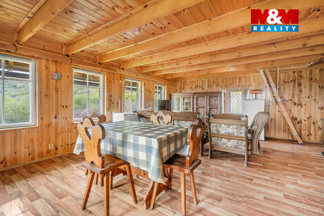 Nabízíme k prodeji kouzelnou dřevěnou chatu, s přiděleným číslem evidenčním, v katastrálním území Třebenice, ideální pro milovníky přírody a relaxace. Tato samostatně stojící nemovitost na polosamotě nabízí 2 nadzemní podlaží, s užitnou plochou 50 m2. Chata je ve velmi hezkém stavu. Je zde nová koupelna s menší vanou a wc. Elektřina je zde samozřejmostí. Voda je čerpána z vrtané studny a odpady jsou svedeny do nově instalovaného septiku. Jsou zde dvě terasy, které poskytují úchvatný výhled na zříceninu hradu Košťálov. Na pozemku o rozloze 6.401 m2 se nachází vinohrad s červenou a bílou révou, ovocné stromy jako broskvoně, jabloně, slivoně a v neposlední řadě fíkovníky. Tato nemovitost je skvělou investicí pro ty, kteří hledají klid na relaxaci a zahradničení. Obec Třebenice disponuje veškerou občanskou vybaveností. Skvělá dostupnost na nájezd na dálnici, do Ústí nad Labem a nebo Prahy, kde jste za necelou hodinu. Neváhejte a domluvte si prohlídku ještě dnes, opravdu to stojí za to.