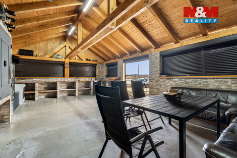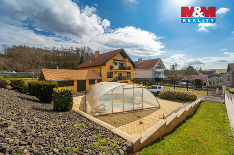 WoW ! Tímto jedním slovem by se dal popsat tento výjimečný dům v Očihově, který splní životní touhy mnohých z vás. Ani "pan Lorenc" by to nezvládl postavit. Nevěříte ? Tak posuďte sami ... "TO MÁTE " ... v suterénu velkou garáž, dílnu, sklady, místnost na zabijačku, sociálku, ... bezbariérově se dostanete do přízemí, kde je jídelna, hala, kuchyň, ložnice, obývák se vstupem na terasu, šatna, koupelna, ... schodištěm vystoupáte do 2.NP, kde je hala spojená s obývákem a vstupem na druhý balkón, šatna, ložnice, dětský pokoj, další vymazlená kuchyně a třetí balkón. Samozřejmě je všechno nově zrekonstruováno, zatepleno, jsou tu 3 skla, tepelné čerpadlo, klimatizace, venkovní žaluzie,... Vedle domu pak zbrusu nová "pártypergola" s grilem, udírnou a barem, bazén se slanou vodou, druhá garáž s dílnou a zvedákem, skleník ... Je toho prostě hafo, tak raději zavolejte a probereme to osobně. Jo a abych nezapomněl - všechno se prodává včetně vybavení ! Takže stačí sbalit kartáček a bydlíte.