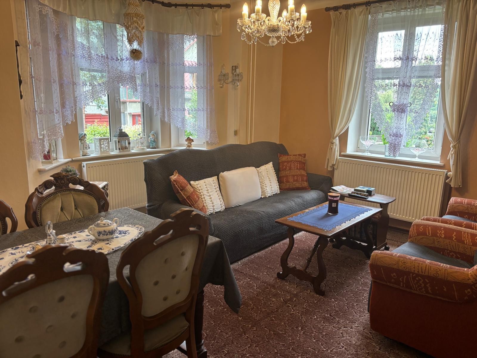 Nabízím prodej pěkného rodinného domu v Děčíně Bělá. Dům se nachází v klidné lokalitě v Děčíně Bělá. Je udržovaný, má novou střechu BRAMAC cca 7 let k tomu okapy a svody. Okna plastová HOCO cca 12 let. Dům zaperlinkovaný, připraven k natažení nové fasády. Sklepy suché, půda suchá vše v čistotě a vyklizeno. Dům je vytápěn plynovým kotlem, ohřev vody taktéž. Odpad sveden do plastového septiku. Dešťová voda svedena do kanalizace. Velmi pěkná rovinatá zahrada, ovocné stromy, okrasné keře. K dispozici kůlny. Co se týče samotného domu: V 1 NP domu se nachází veranda, chodba a vstup do velkého obývacího pokoje s arkýřem. Dříve byl pokoj rozdělen do dvou pokojů. Krásný výhled do zahrady. Vedle je malá kuchyně, koupelna a samostatné WC a dolů směr sklep, nahoru do patra, kde se nacházejí tři pokoje. Jeden pokoj plně samostatný, dva pokoje průchozí s krásným vestavěným krbem a v jednom zadním pokojíku je balkonek. Dále je zde WC a příprava na sprchový kout. Nahoru vstup na suchou čistou půdu. U domu je i rampa pro lidi s omezenou hybností. Je potřeba opravit. Velmi pěkný udržovaný dům s parkováním buď na zahradě či před domem. Nutno vidět.