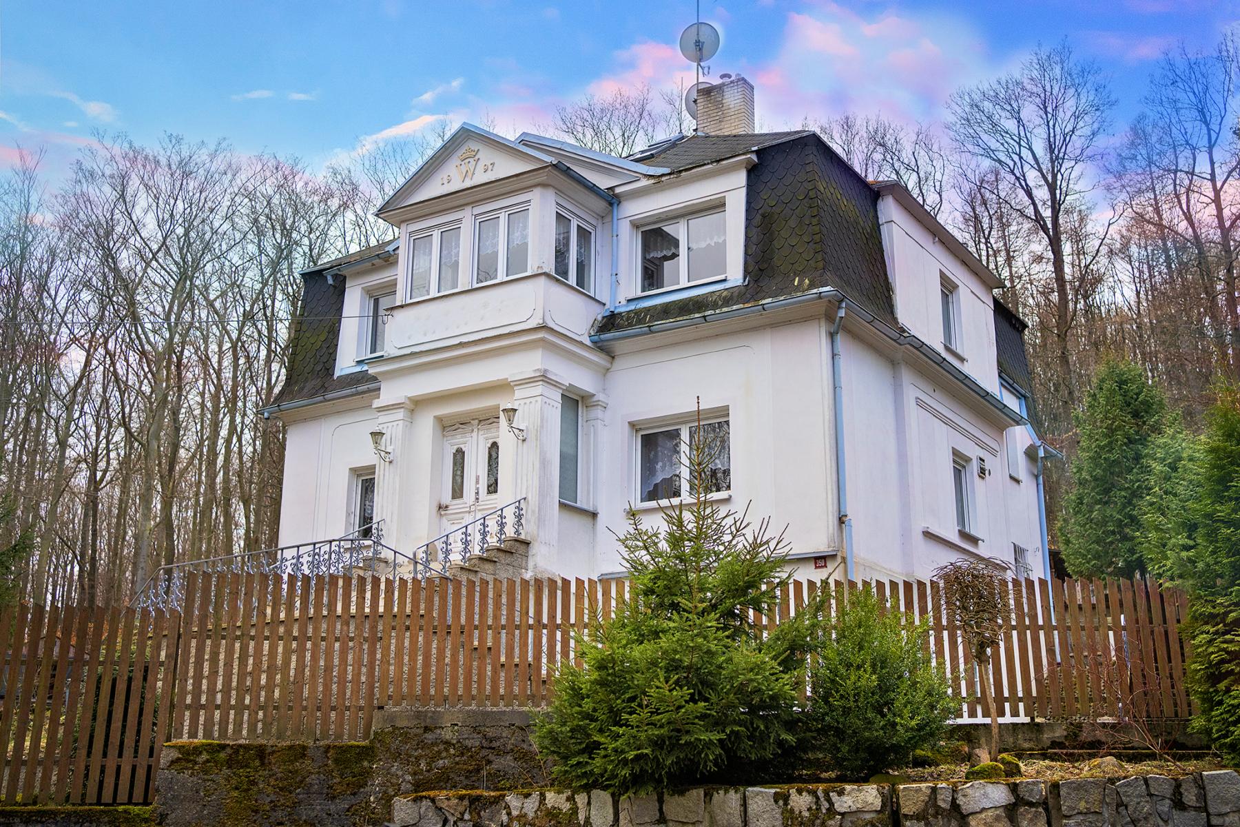 Prodej vily v lázních Dubí. Třípodlažní vila nacházející se v klidném prostředí lázní Dubí u Teplic nedaleko Cínovce, s možností sportovního využití, četných lyžařských tras i cyklotras Krušnohoří, včetně nedalekého multifunkčního areálu v Altenbergu, v blízkosti přechodu do Německa. I.NP: chodba, kuchyň, 2 místnosti, vana, technická místnost s plynovým kotlem, boilerem, WC a prádelna, centrální vysavač. II.NP: zádveří, chodba, místnost se sprchou a WC, 3 místnosti, další místnost se sprchou a WC. III.NP: chodba, 2 místnosti skladů, kuchyňská část, obytná část a ložnice, místnost s vanou a WC. Podkroví: sprcha s WC, menší obytný prostor a větší obytná místnost před dokončením. Objekt je napojen na obecní vodovod a kanalizaci, elektřina 380/220 V. Topení o ohřev vody zajišťují 2 plynové kondenzační kotle a boiler. Pozemek o celkové výměře 614 m2 je oplocený, část má zastřešený prostor.